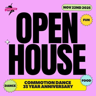 Join us for a free introductory dance class at the Commotion Dance Open House on Saturday, November 22nd!
